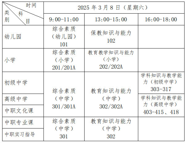 3.報考中職專業(yè)課和中職實(shí)習(xí)指導(dǎo)教師資格的考生,筆試考2個公共科目,科目代碼分別為301、302。