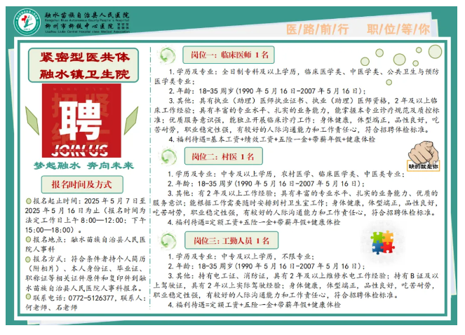 原文標題:融水苗族自治縣融水鎮(zhèn)衛(wèi)生院招聘