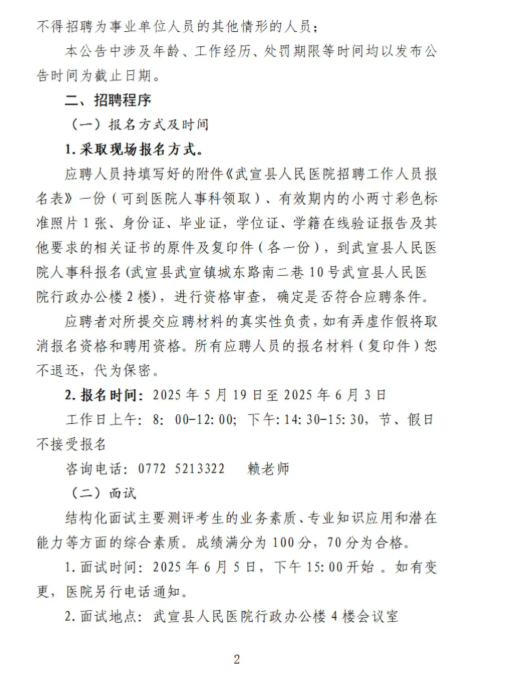 原文標(biāo)題:武宣縣人民醫(yī)院2025年第一次公開招聘臨時聘用人員公告