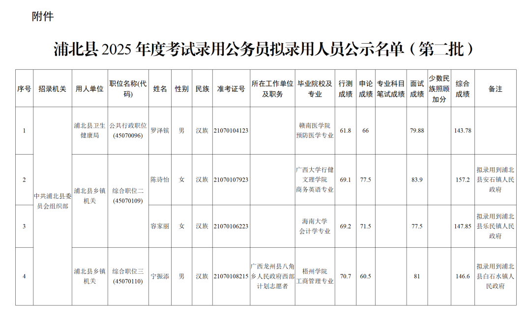 10 浦北縣2025年度考試錄用公務(wù)員(參照管理人員)擬錄用人員公示(第一批)