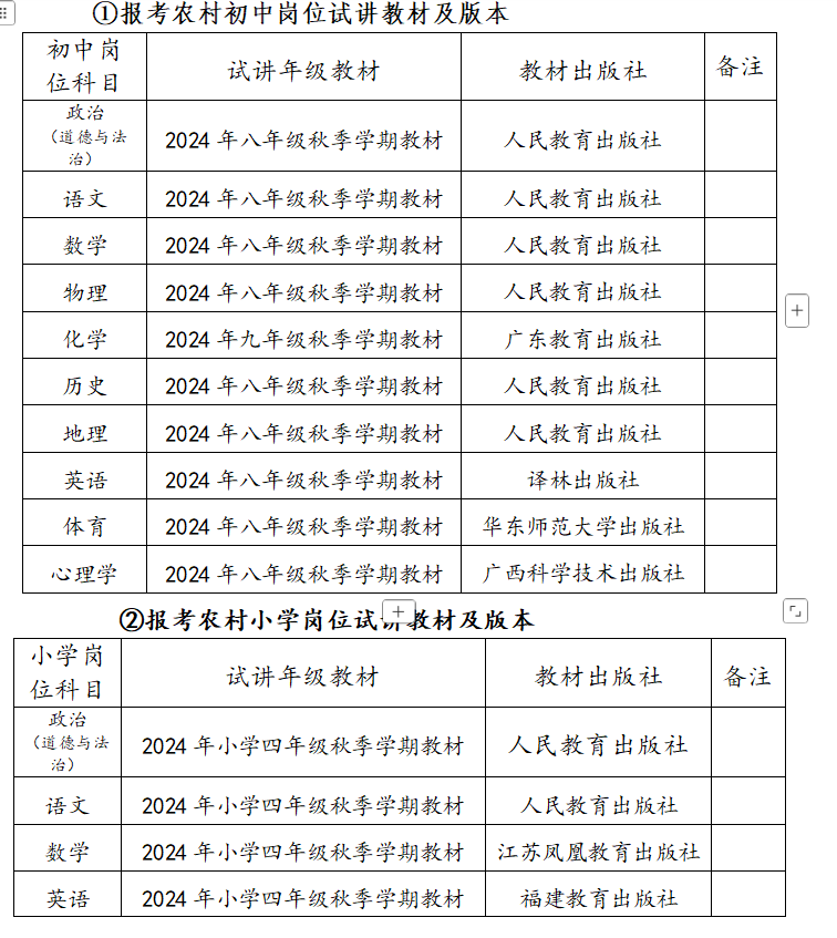 ①報(bào)考農(nóng)村初中崗位試講教材及版本