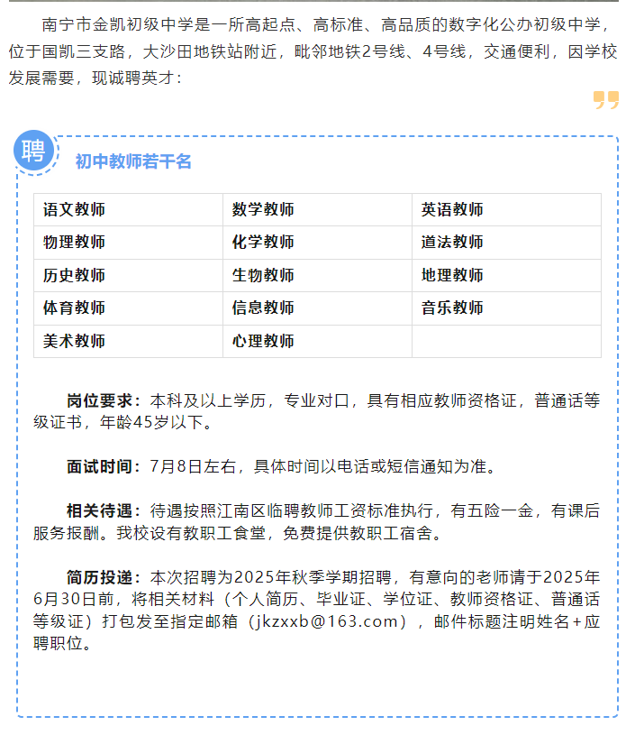 2025年南寧市金凱初級(jí)中學(xué)招聘若干名