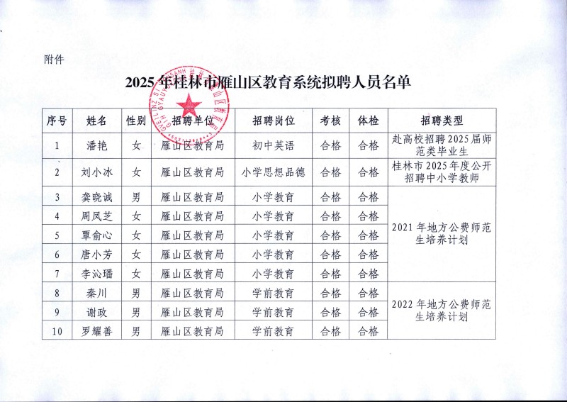 2025年桂林市雁山區(qū)教育系統(tǒng)擬聘人員名單公示