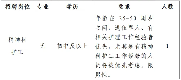 為了給我院精神科患者提供更優(yōu)質(zhì)、貼心的照護(hù)服務(wù),現(xiàn)面向社會(huì)公開招聘精神科護(hù)工一名,期待有愛心、有責(zé)任心的你加入我們的團(tuán)隊(duì),共同為患者的健康保駕護(hù)航。具體事宜公告如下: