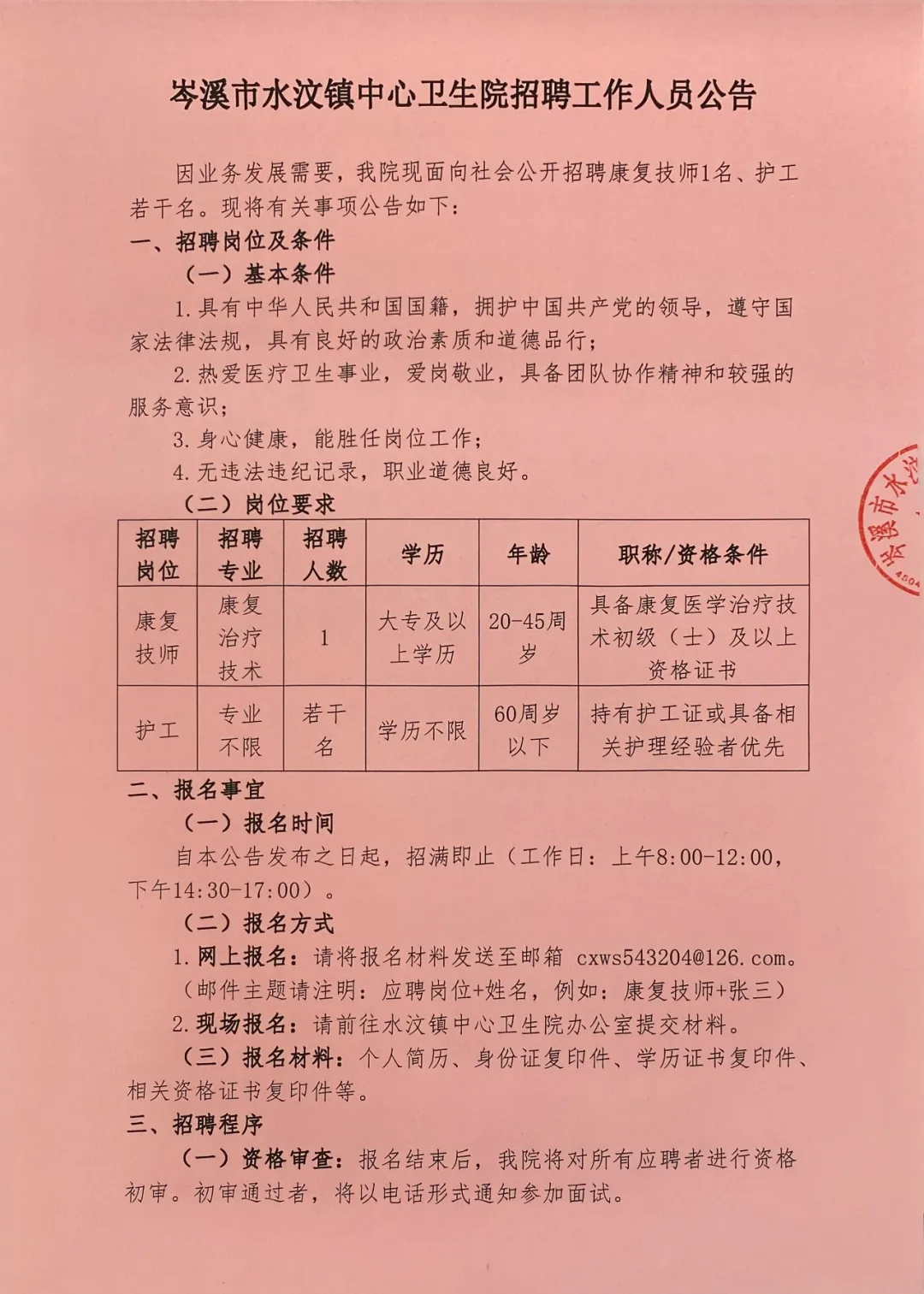 原文標題:2025年梧州岑溪市水汶鎮(zhèn)中心衛(wèi)生院招聘護士和康復技師